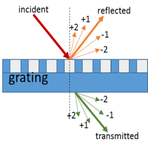 在光学中,衍射光栅是具有周期性结构的光学部件,它可将光分解并衍射成沿着不同方向传播的几个光束,称为光栅级数。 这些光束的方向取决于光栅的间距,入射角和光的波长。 波长依赖性使得光栅作为分散元件可以在光谱仪中常用。